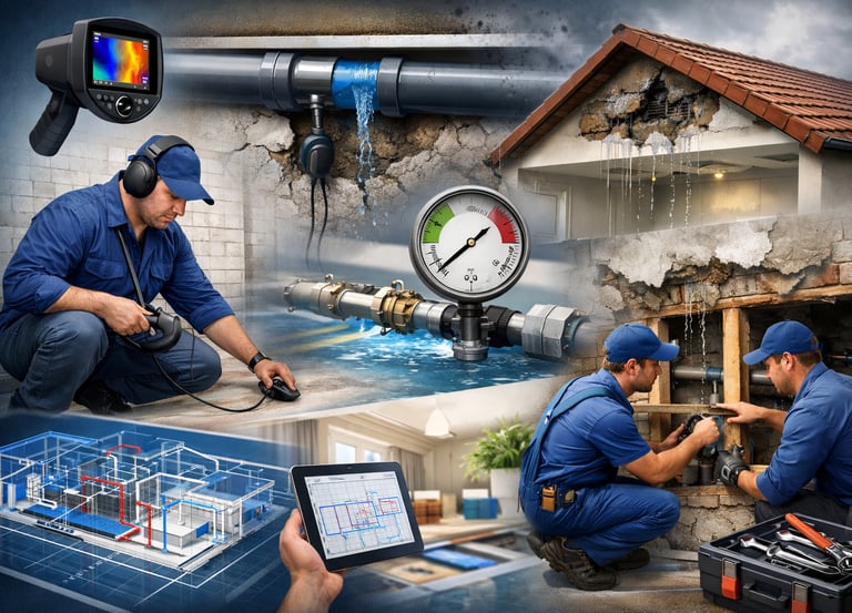 Caça Vazamentos Ocultos: Localização precisa de vazamentos em tubulações de água e esgoto, sem quebra-quebra desnecessário.